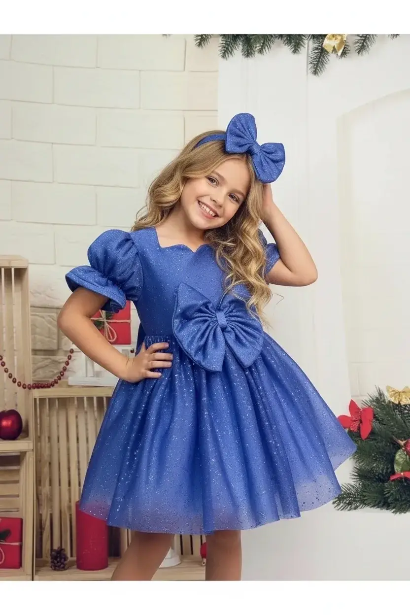 Acık mavi kız çocuk elbisesiı astarlı özel günlerde çocuğunuzun kullana bileceği çok şık bir elbise doğun günleri nişan kına bayram özel günlerde giyine bilir