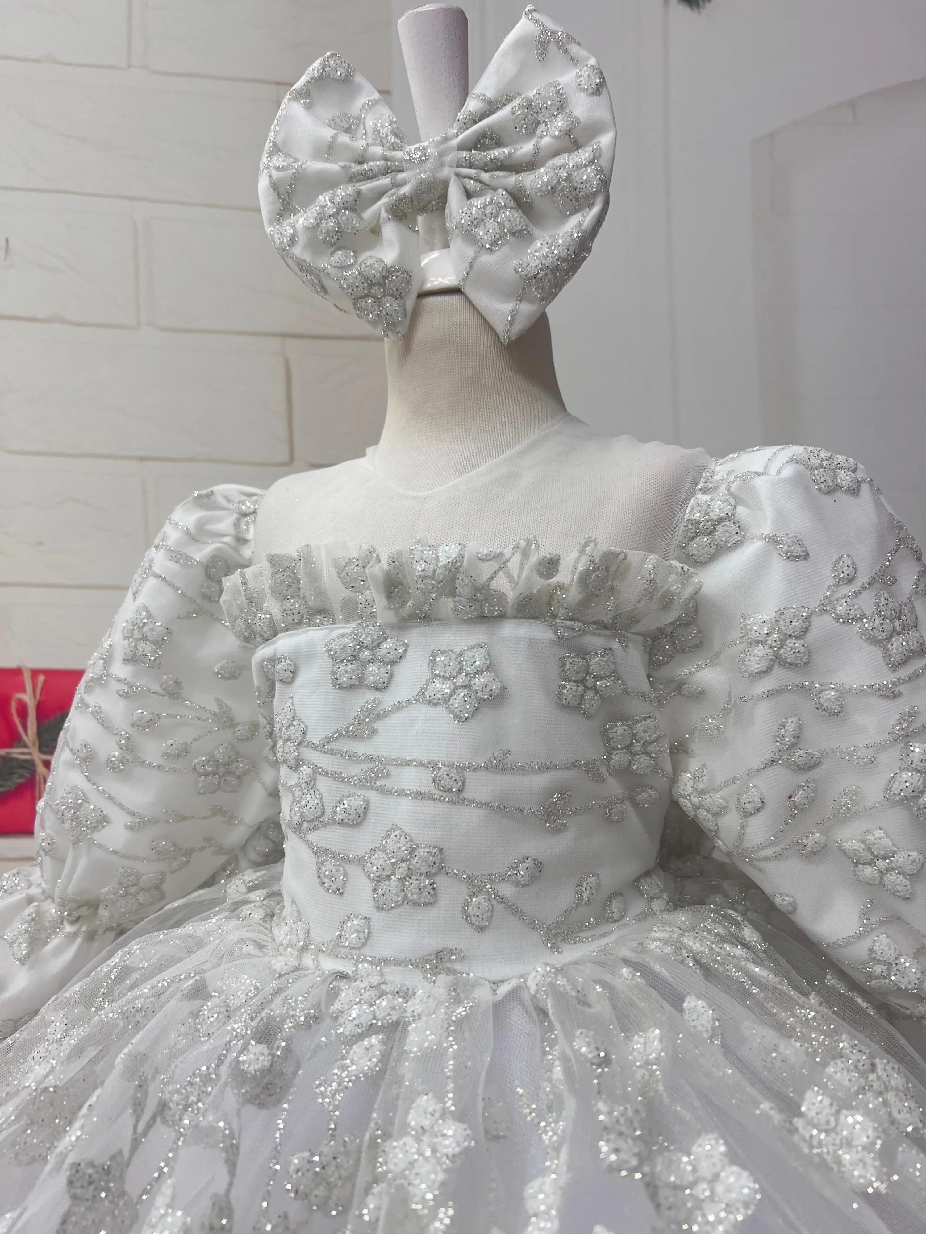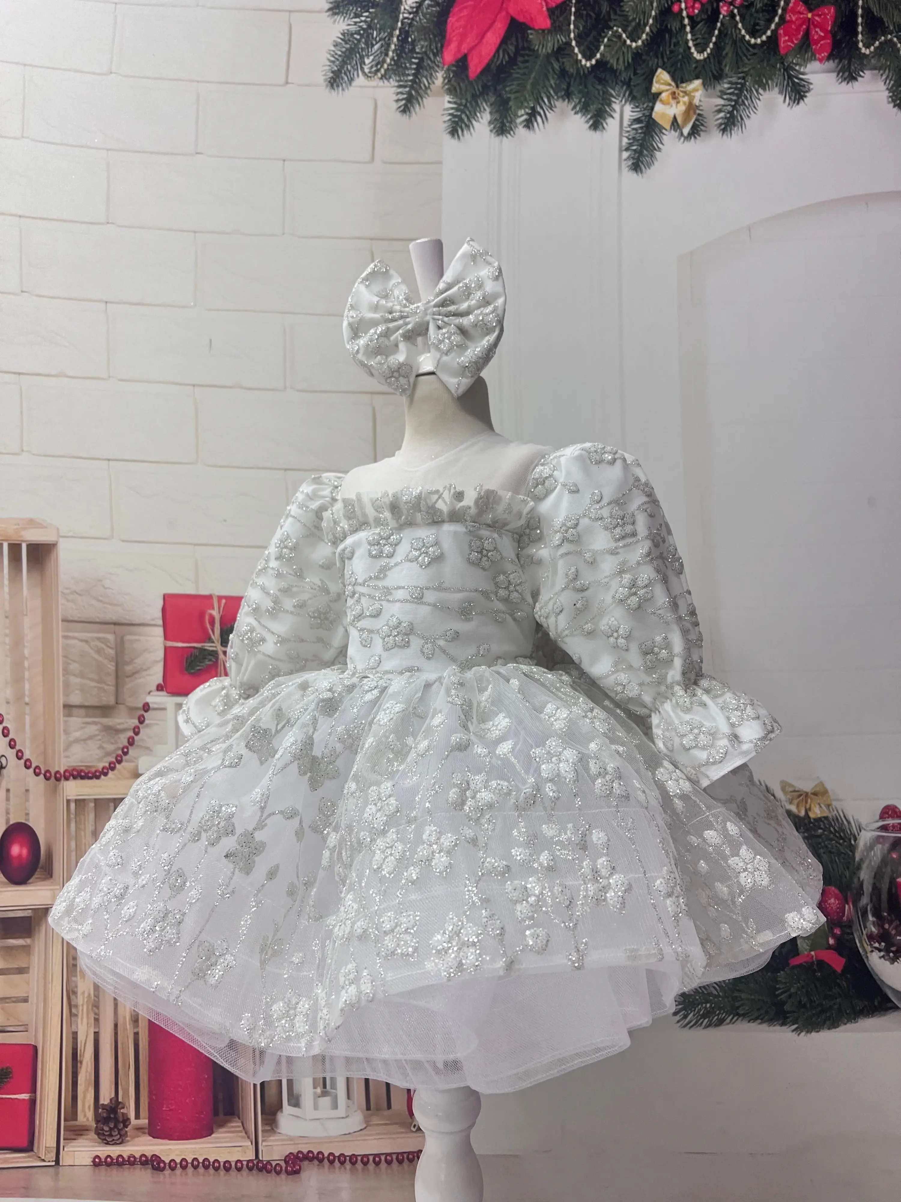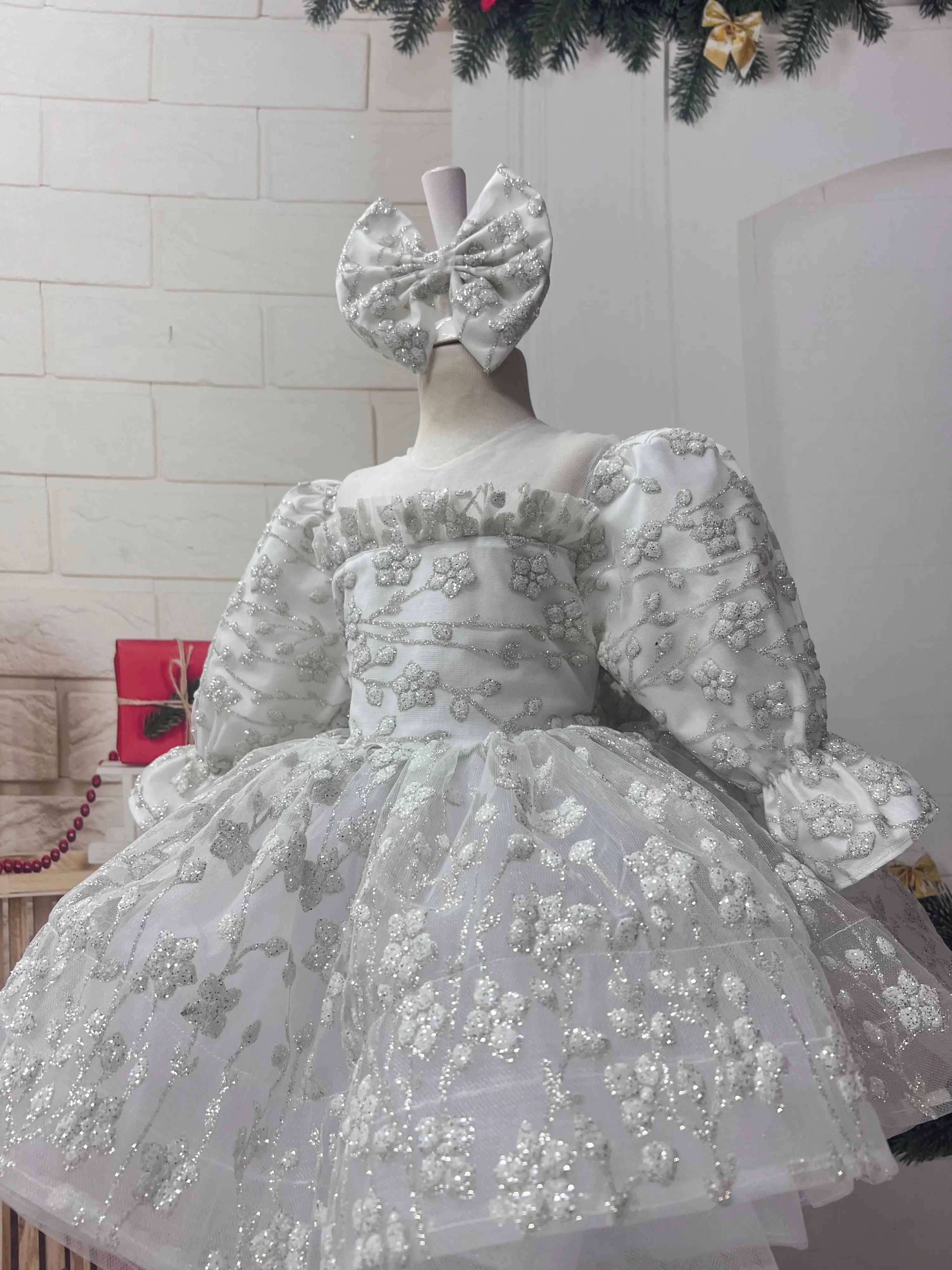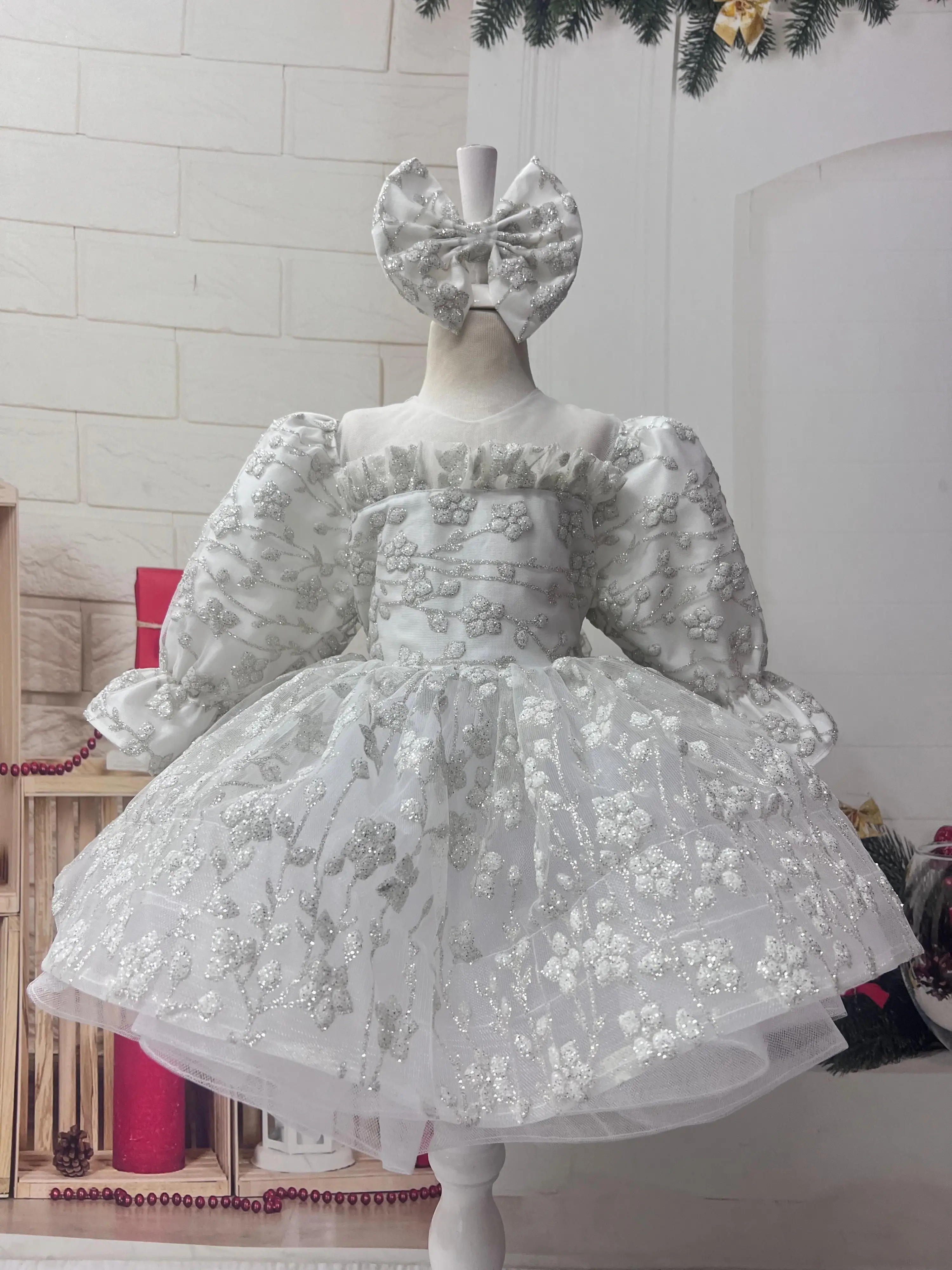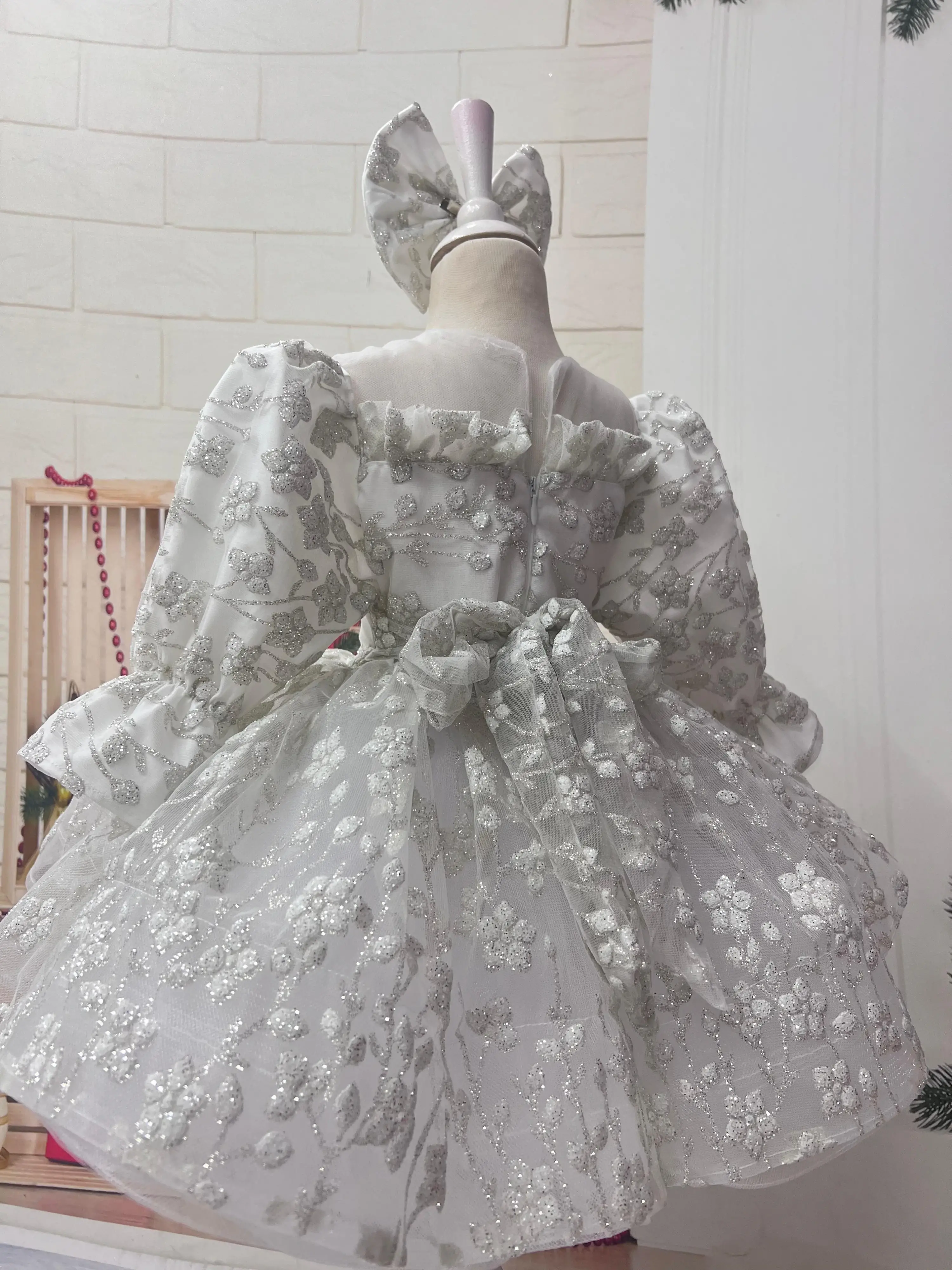 Küçük prenseslerin özel günlerde ışıltısıyla fark yaratacağı abiye elbise, zarif ve lüks bir görünüm sunar. dokusu sayesinde kış aylarında sıcak tutarken, ışıltılı yaka detayı elbiseye asil bir dokunuş katar. Bel kısmındaki göz alıcı bir şıklık sağlar.