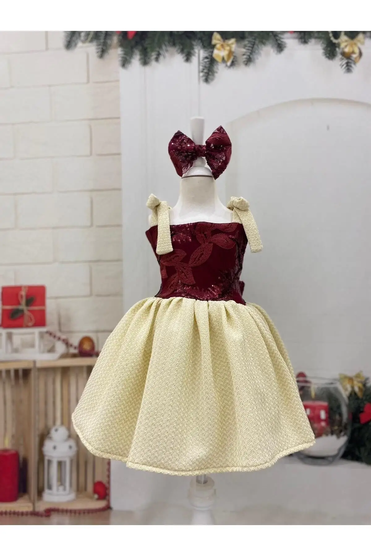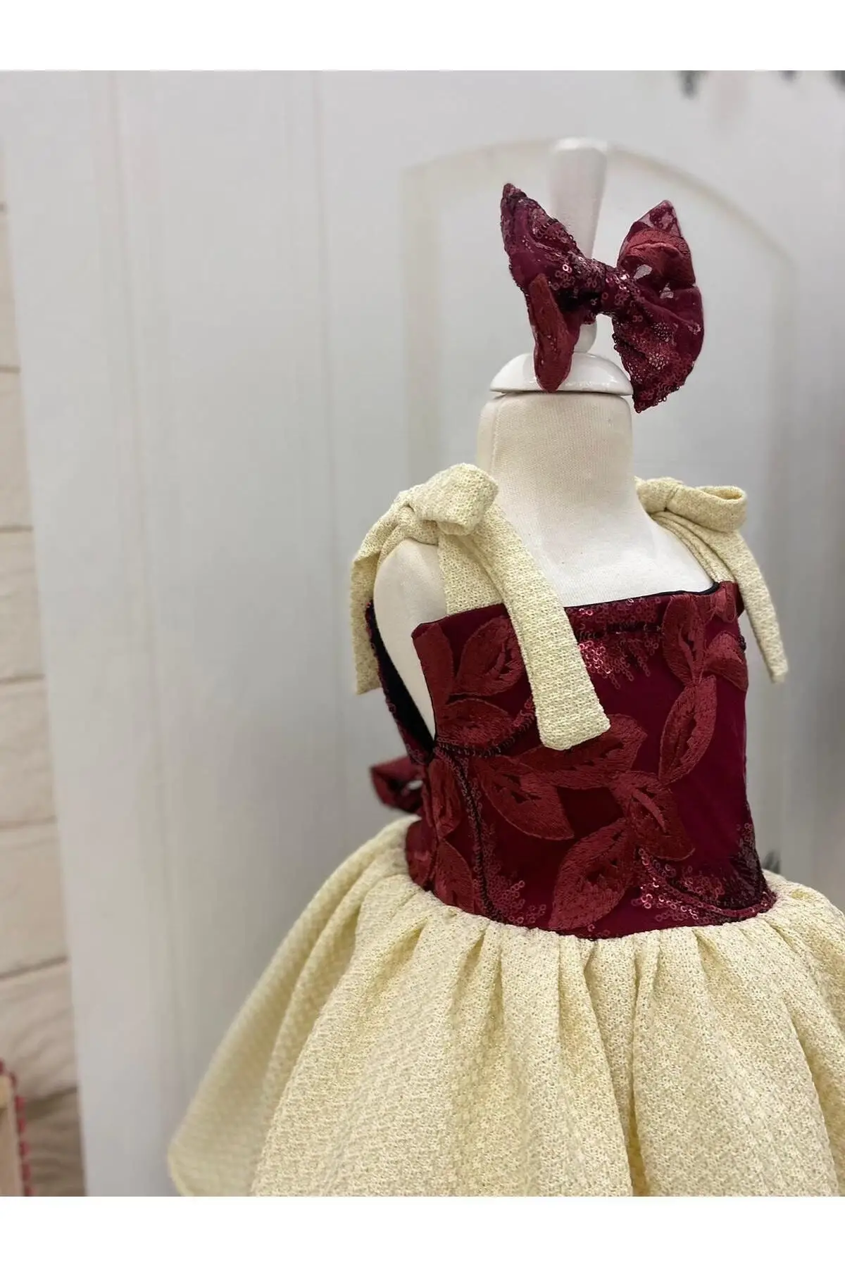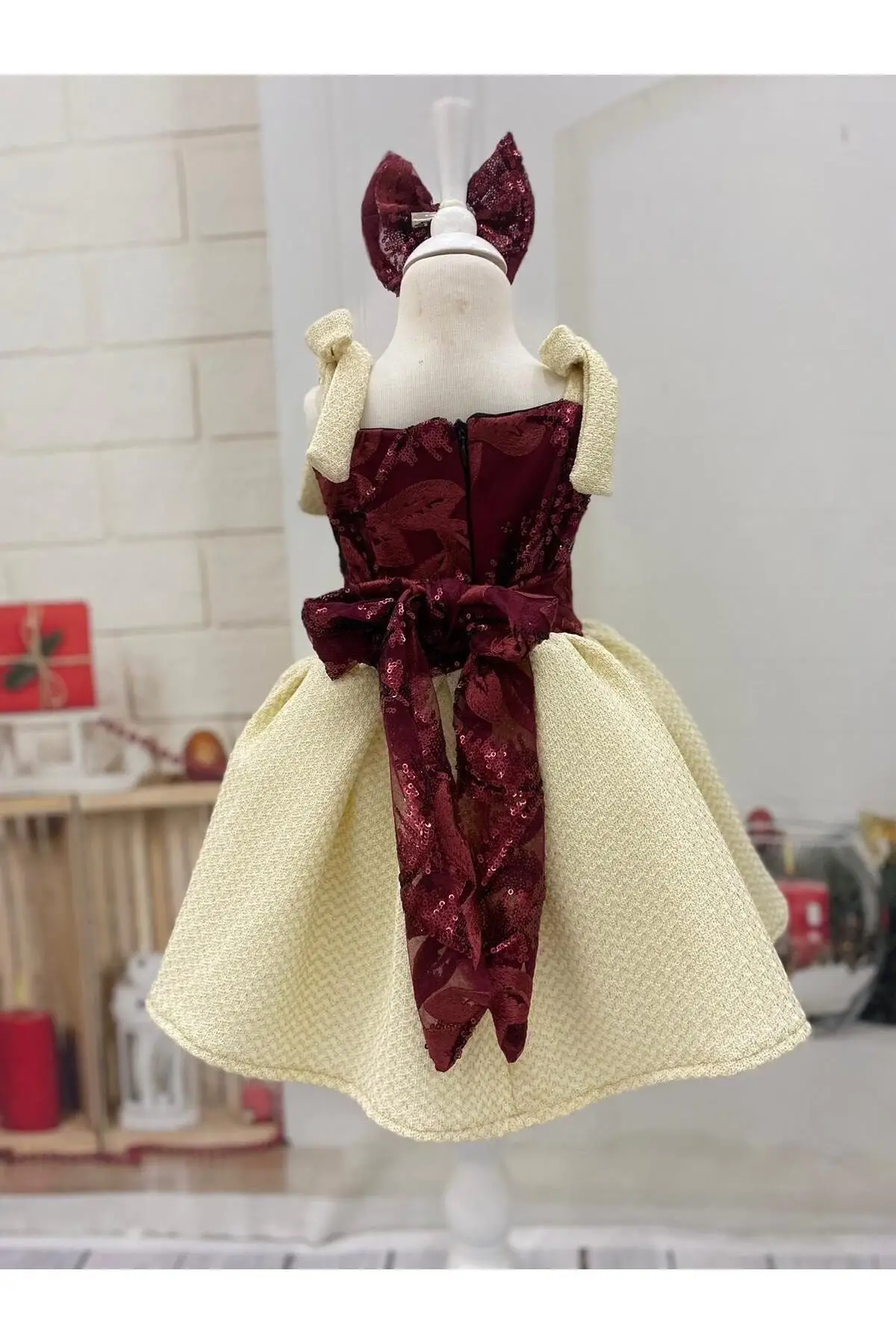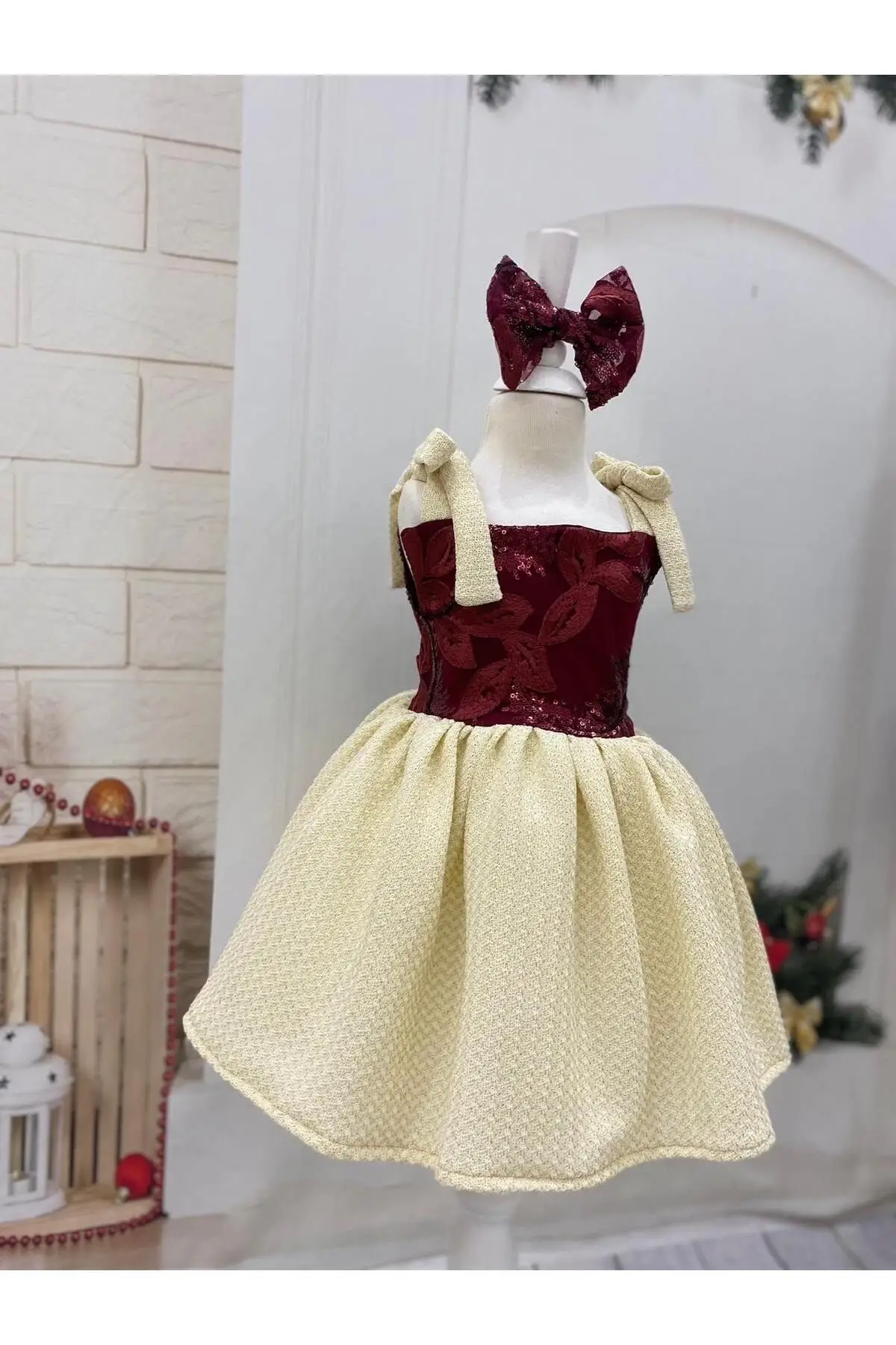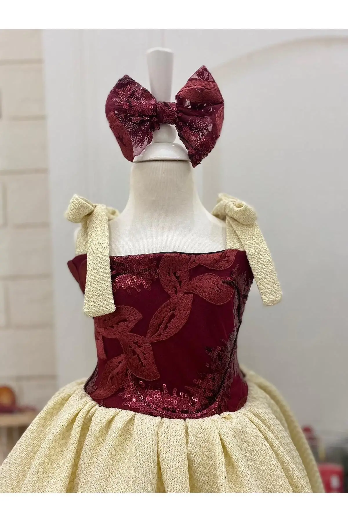 Bordo Desenli Kız Çocuk Elbisesi Fermuarlı özel günlerde çocuğunuzun kullana bileceği çok şık bir elbise Doğun günleri nişan kına bayram özel günlerde giyine bilir