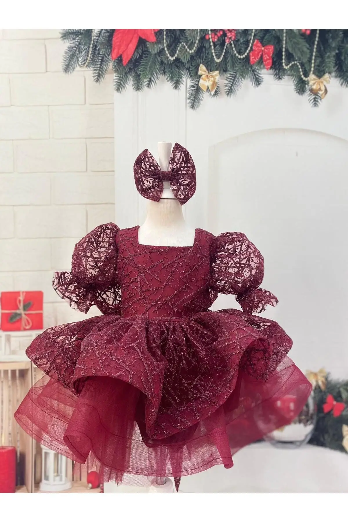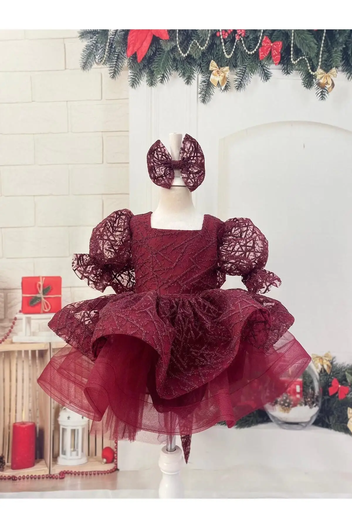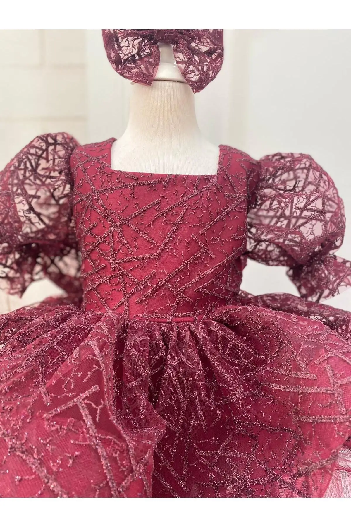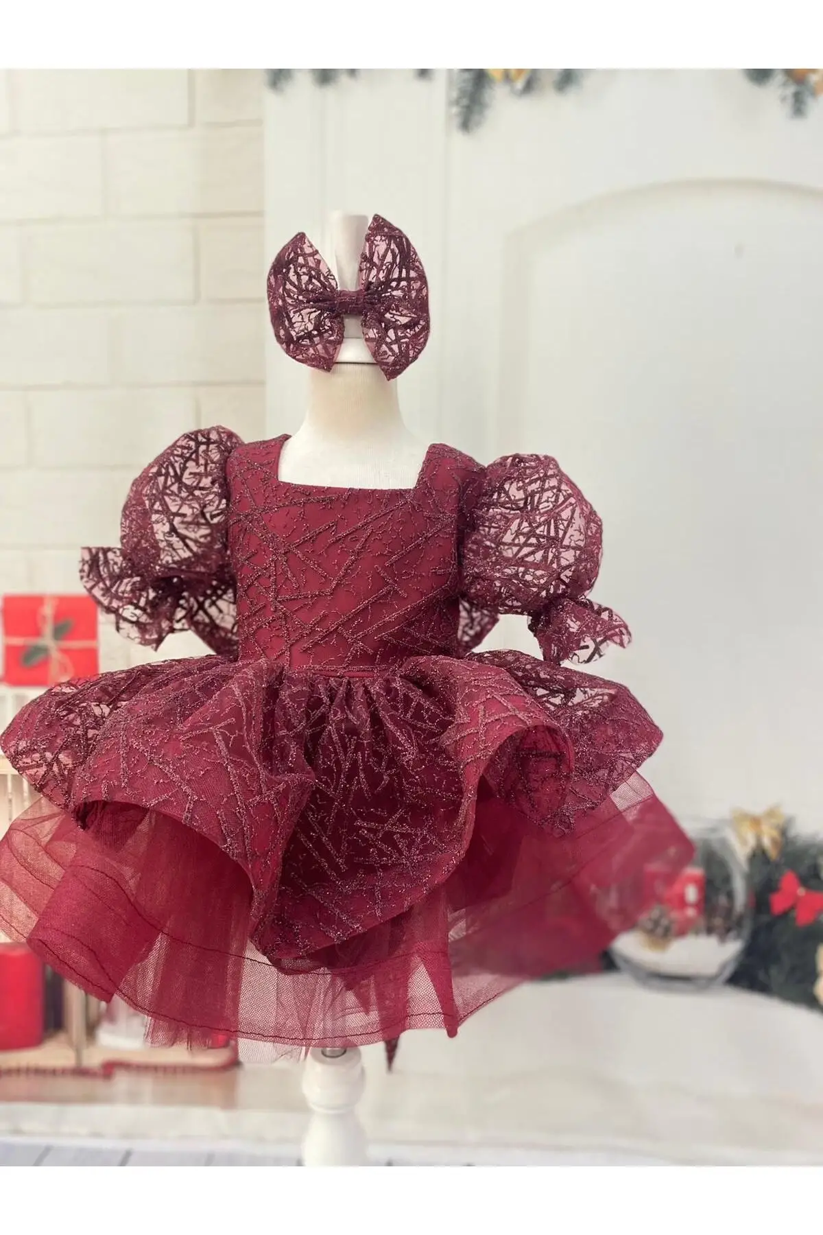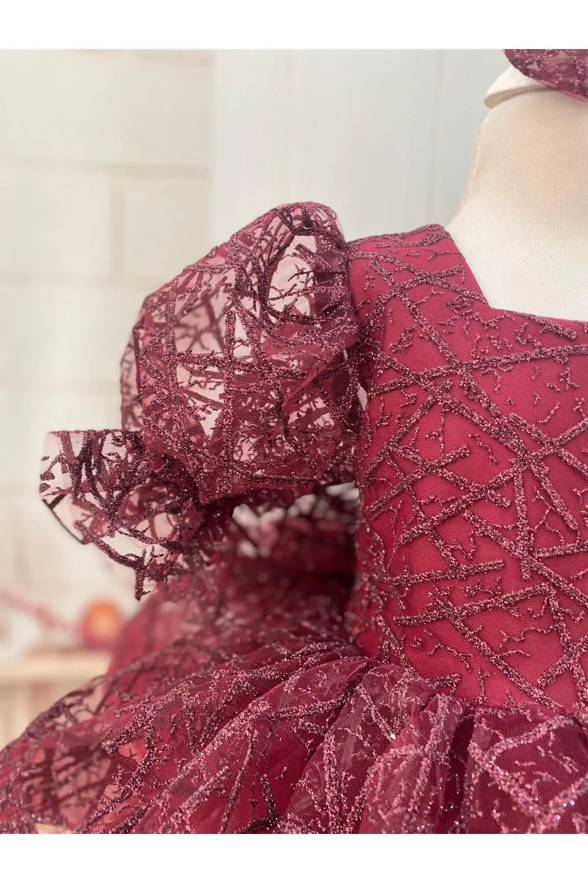 Bordo simli kız çocuk elbisesi elbisesi tulumlu fermuarlı özel günlerde çocuğunuzun kullana bileceği çok şık bir elbise doğun günleri nişan kına bayram özel günlerde giyine bilir