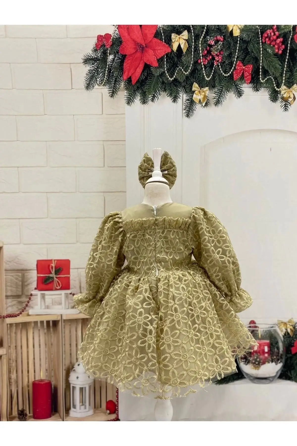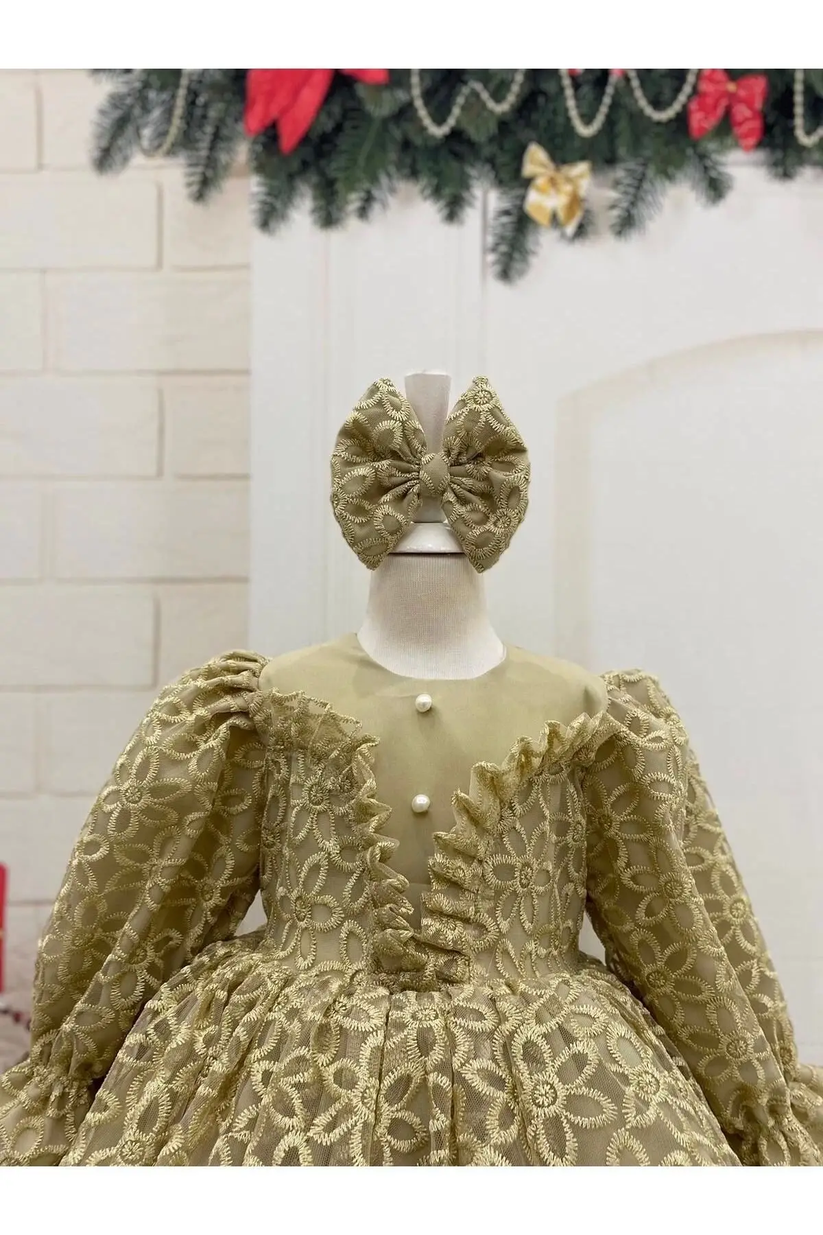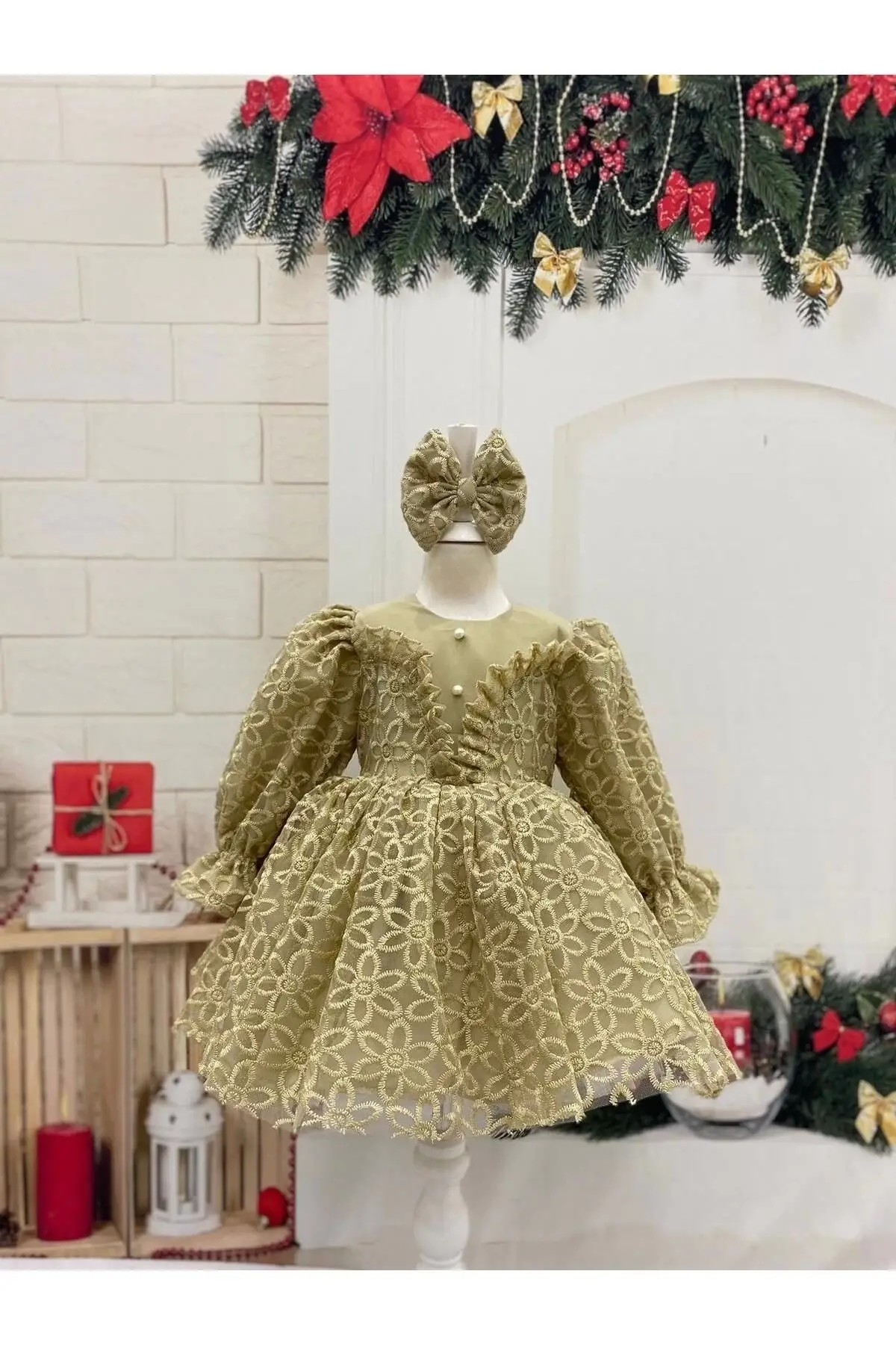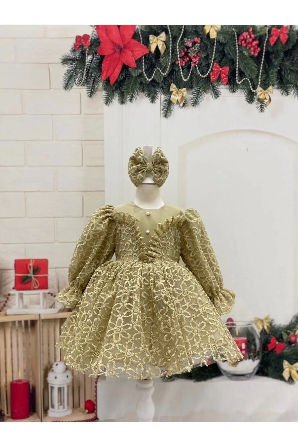 Gold Desenli Kız Çocuk Elbisesi fermuarlı astarlı özel günlerde çocuğunuzun kullana bileceği çok şık bir elbise doğun günleri nişan kına bayram özel günlerde giyine bilir