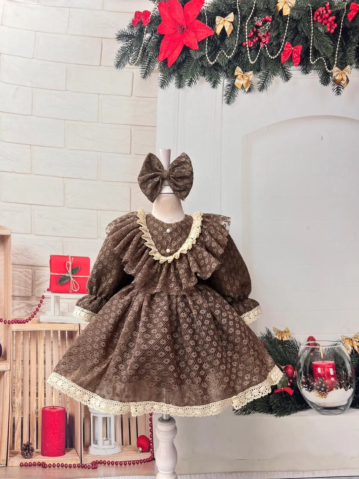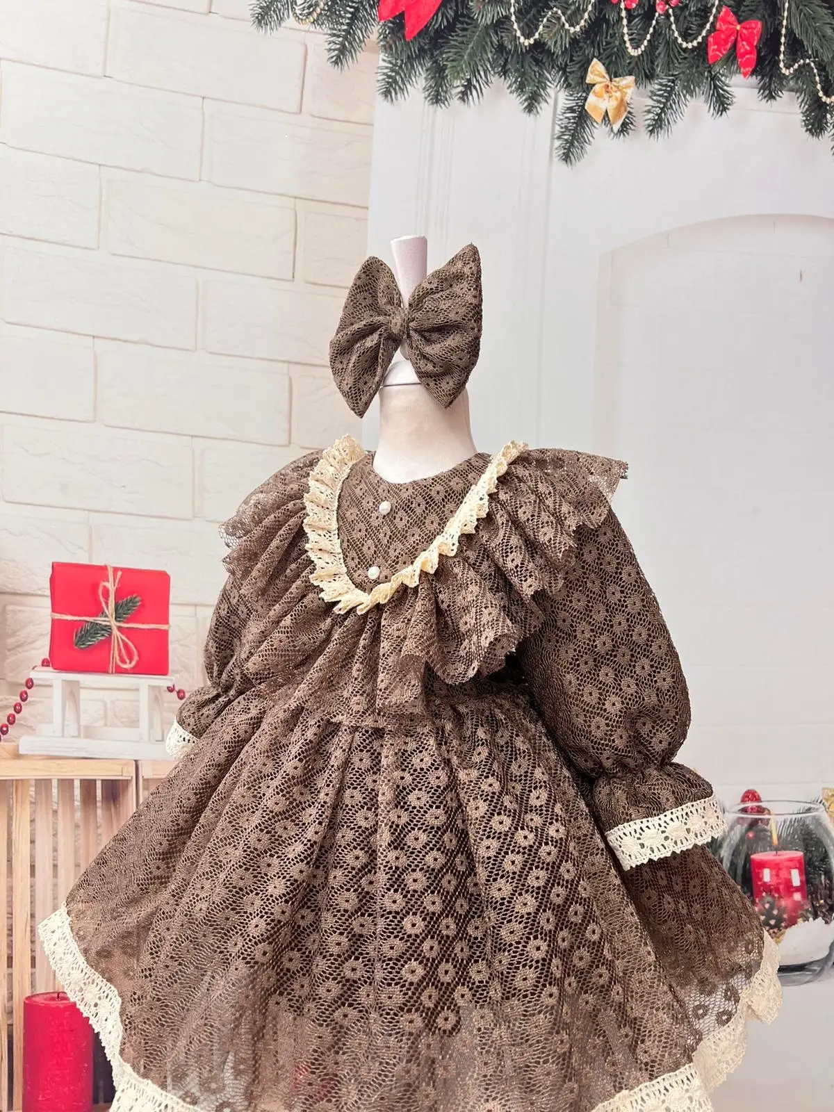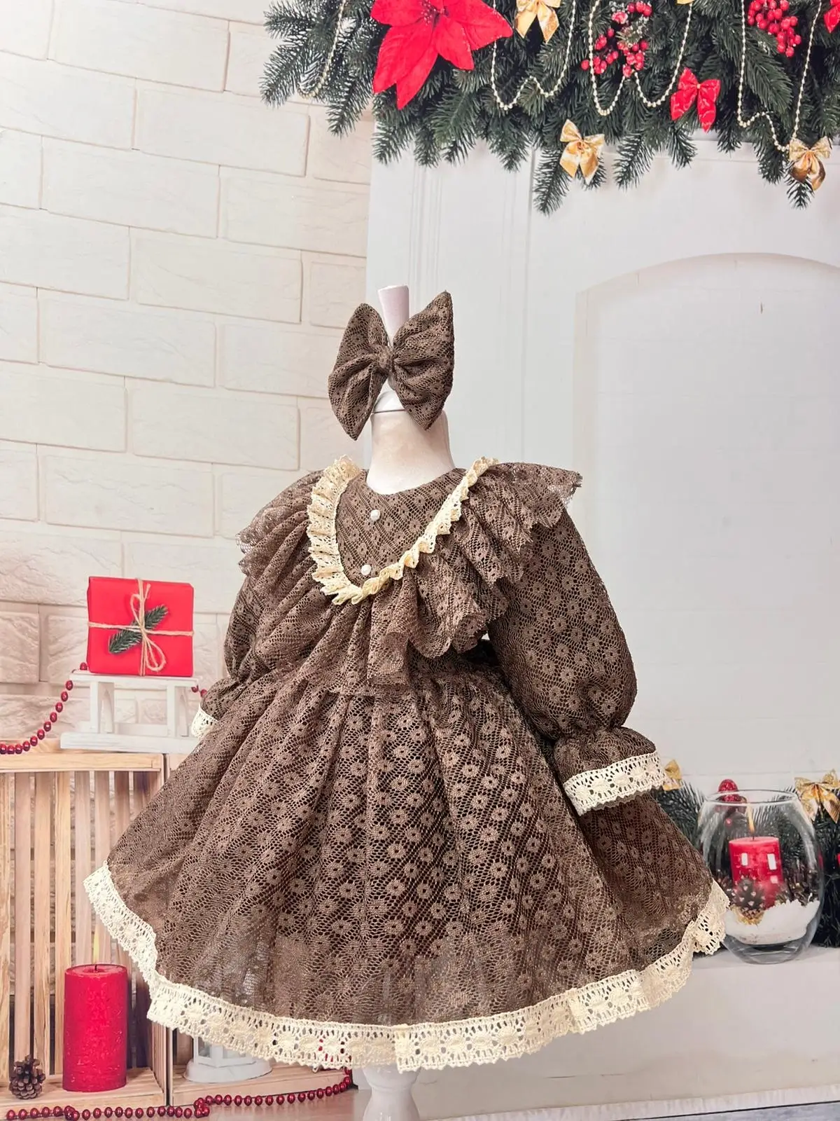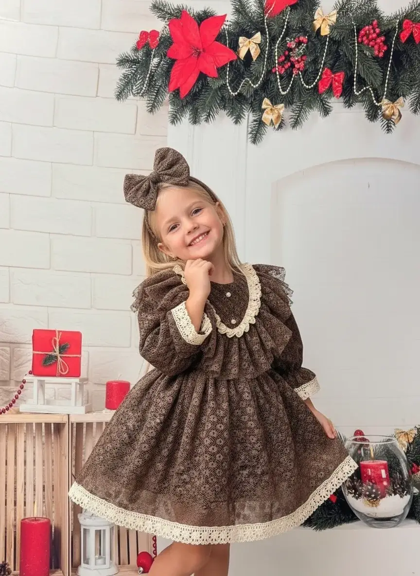 Nisa Kids vintage koleksiyonundan ilham alan bu özel kız çocuk elbisesi, zarif dantel detayları ve kabarık etek formu ile dikkat çeker. Yumuşak dokulu kumaşı sayesinde çocukların hassas cildine uygundur. Fırfırlı yaka tasarımı, inci görünümlü düğmeleri ve etek ucundaki dantel işlemeleri elbiseye nostaljik ve şık bir hava kazandırır.