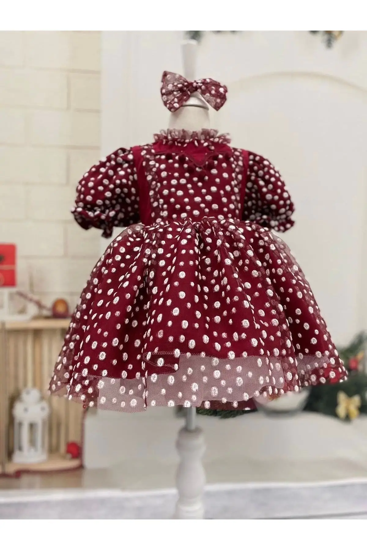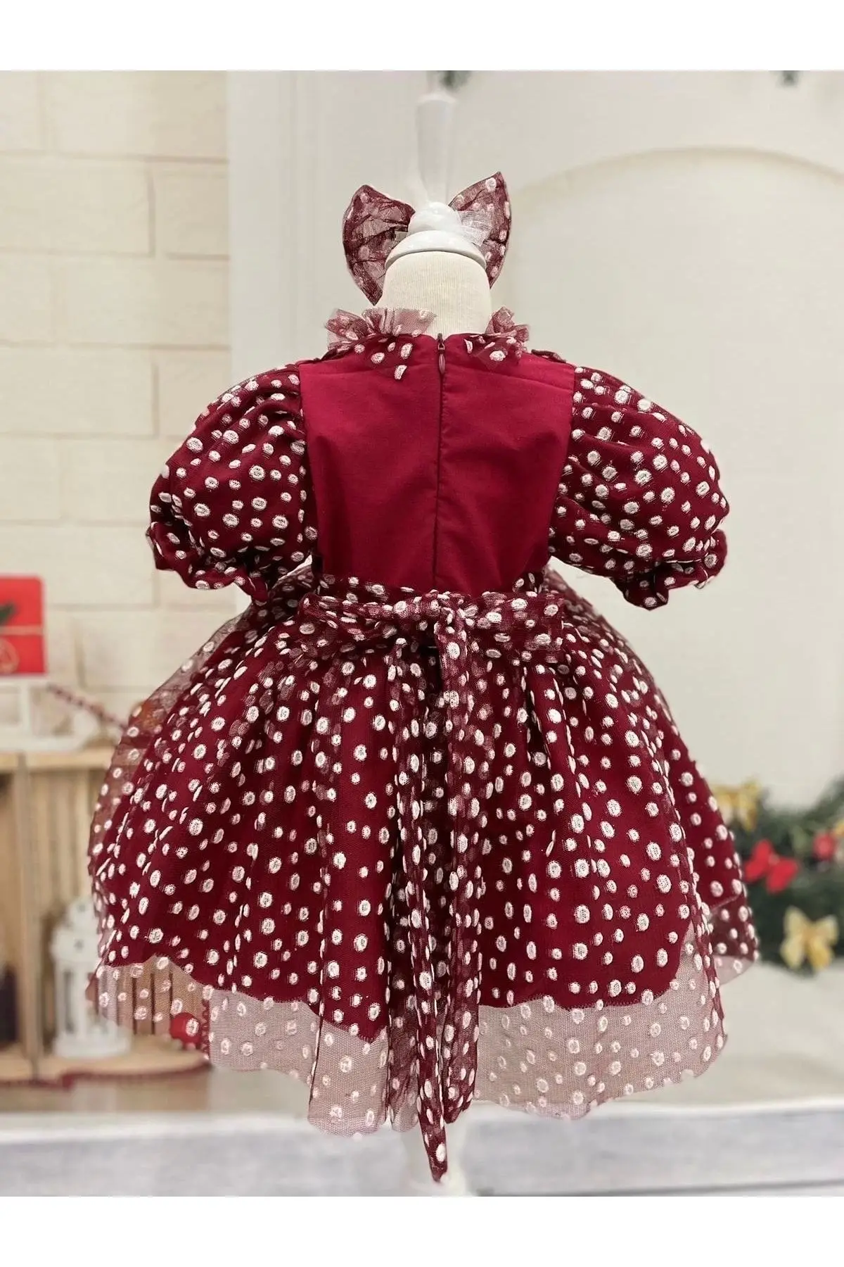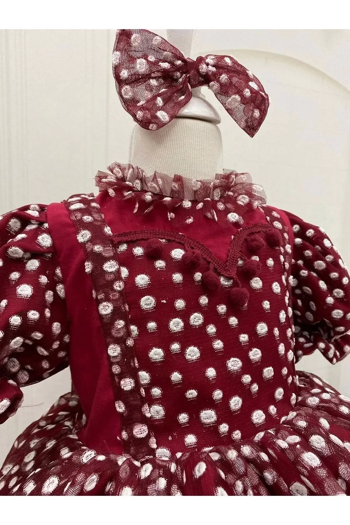Kırmızı Puantiyeli Kız Çocuk Elbisesi tulumlu Fermuarlı özel günlerde çocuğunuzun kullana bileceği çok şık bir elbise Doğun günleri nişan kına bayram özel günlerde giyine bilir