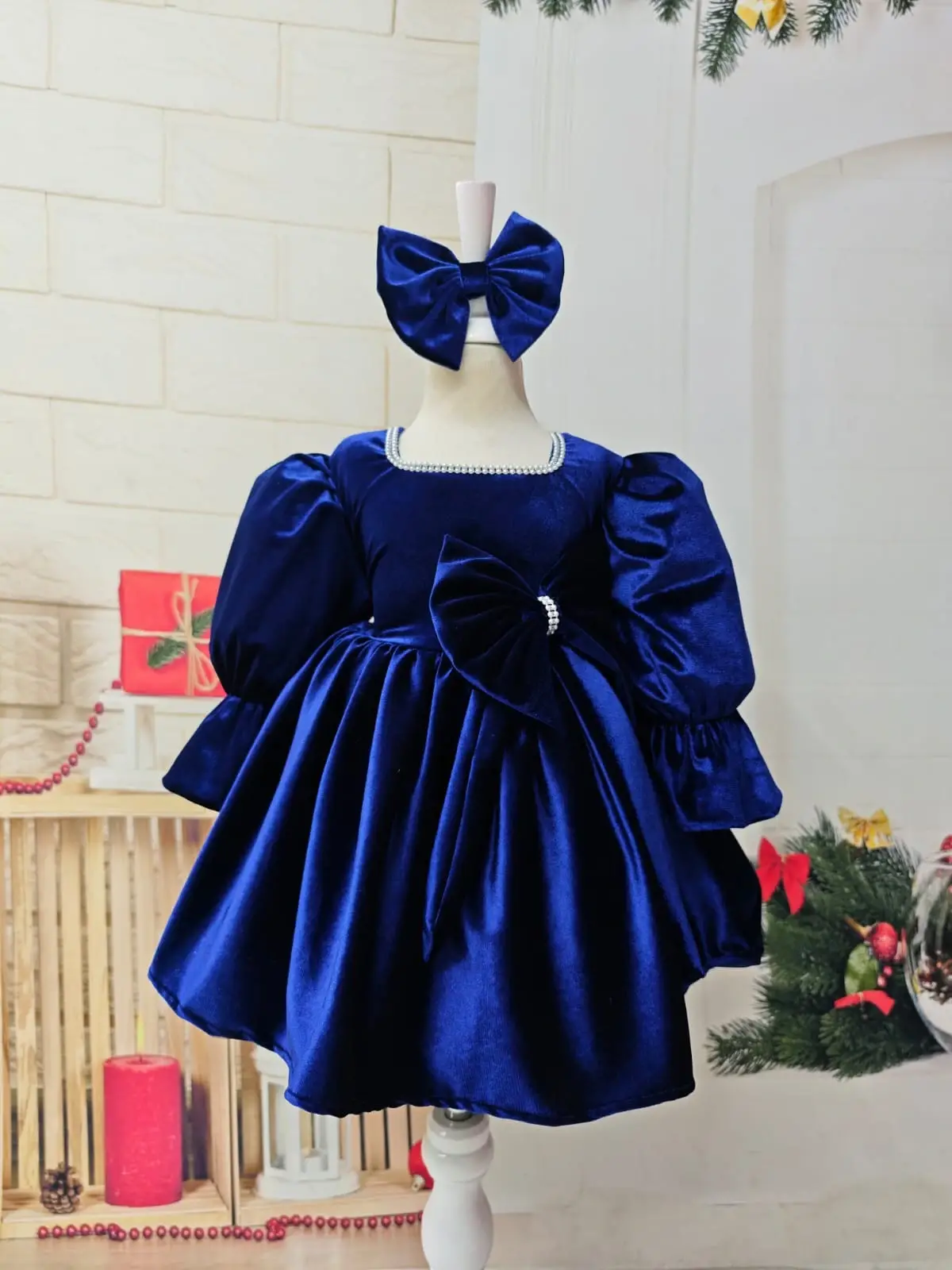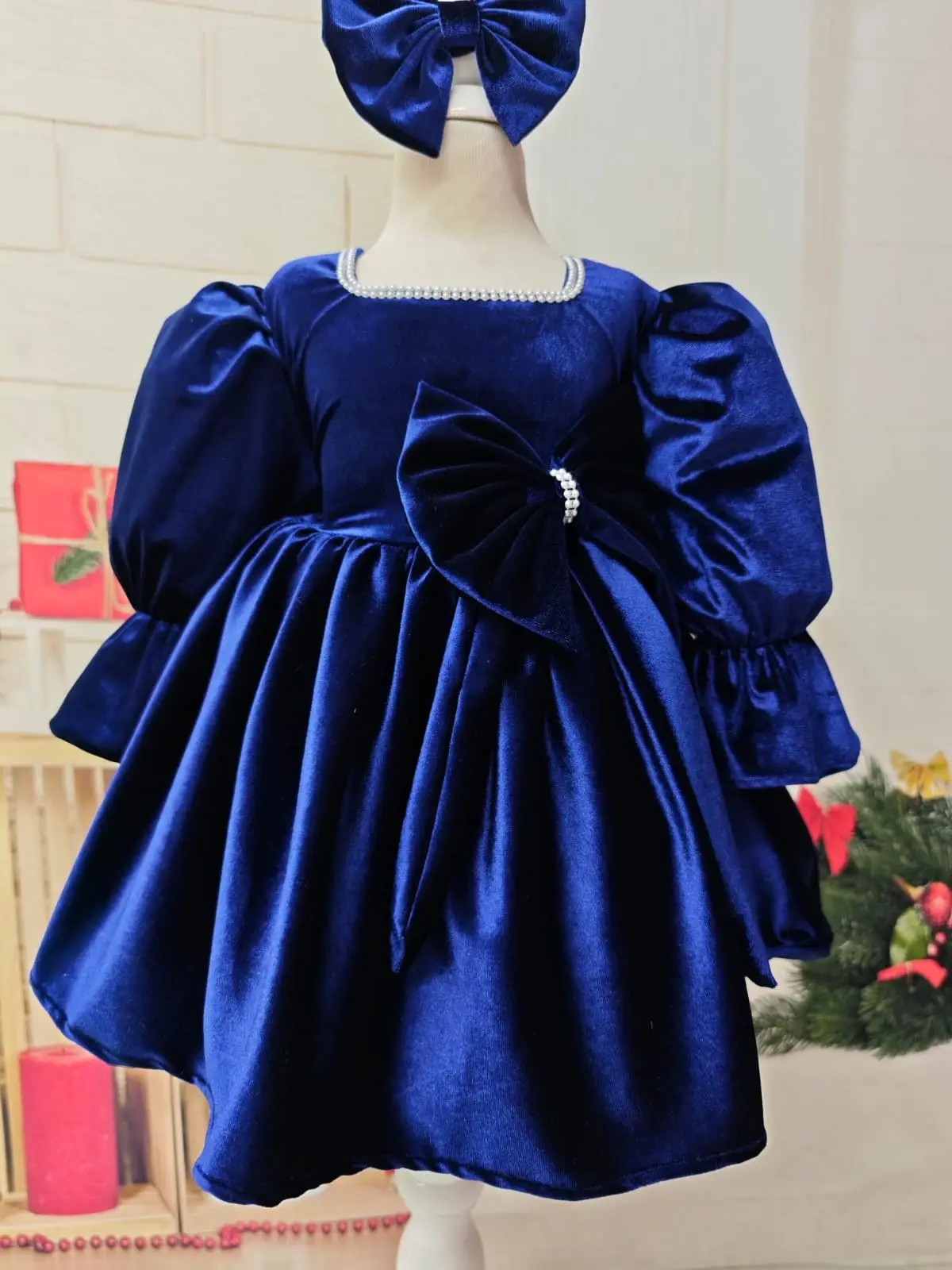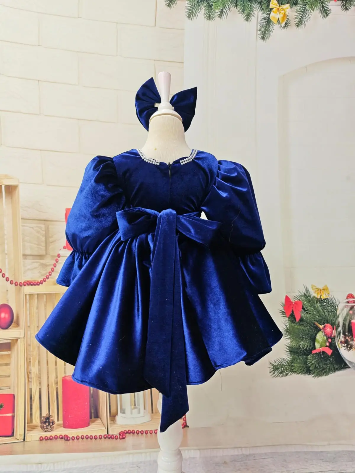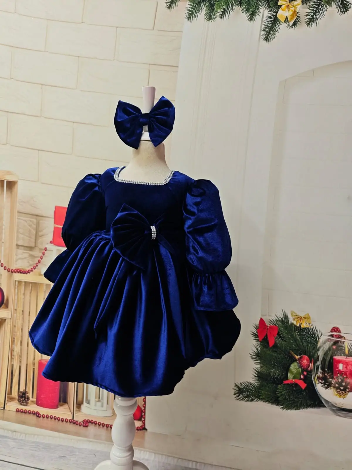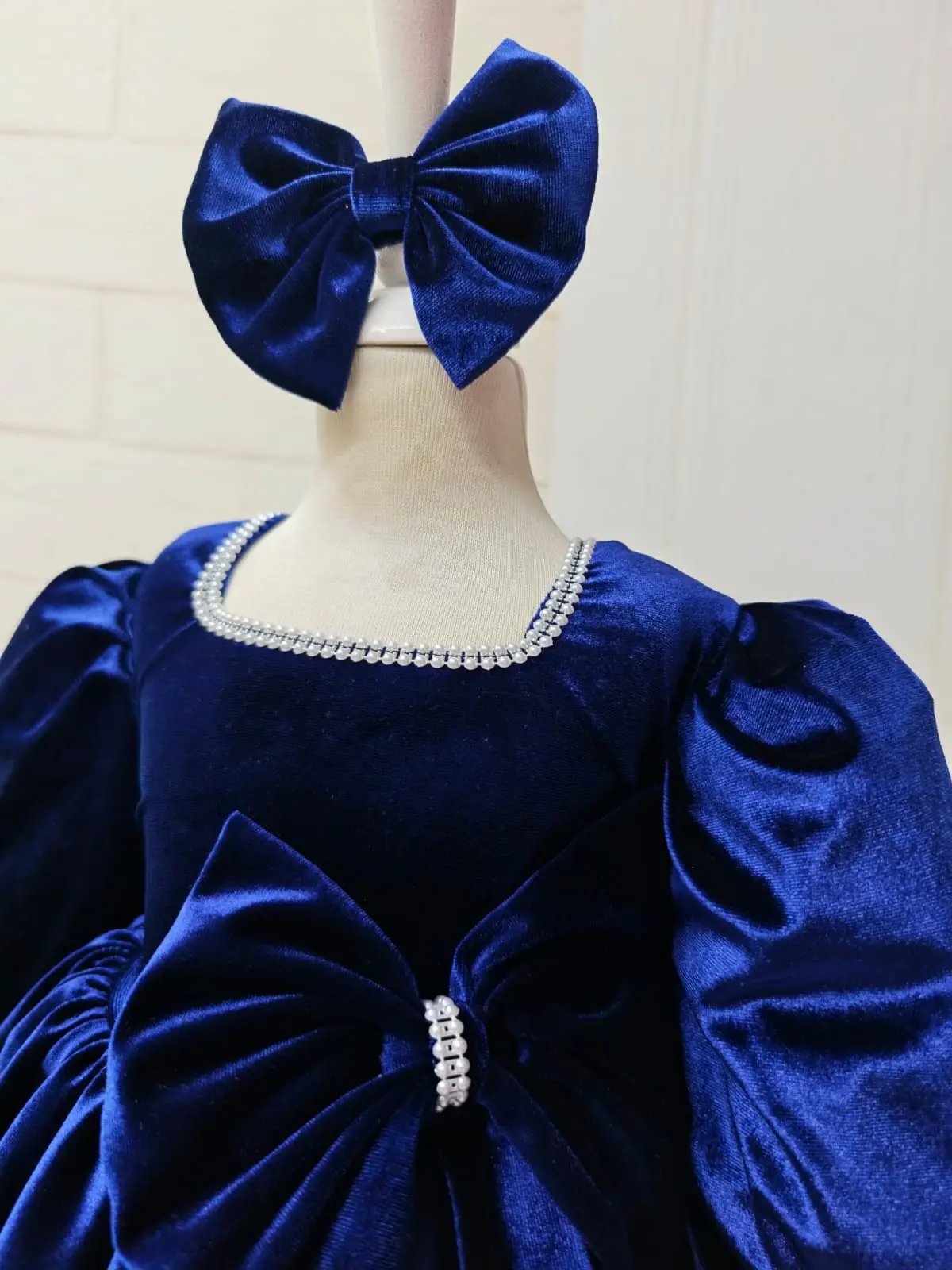 • Kız Çocuk Kadife Abiye Elbise – Lacivert Model