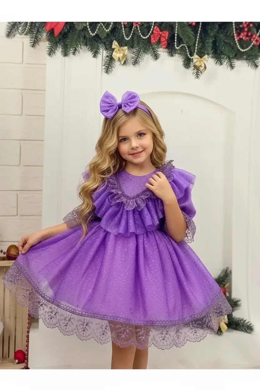 • KOPYA - Bebe Mavisi Danteli Kız Çocuk Elbisesi