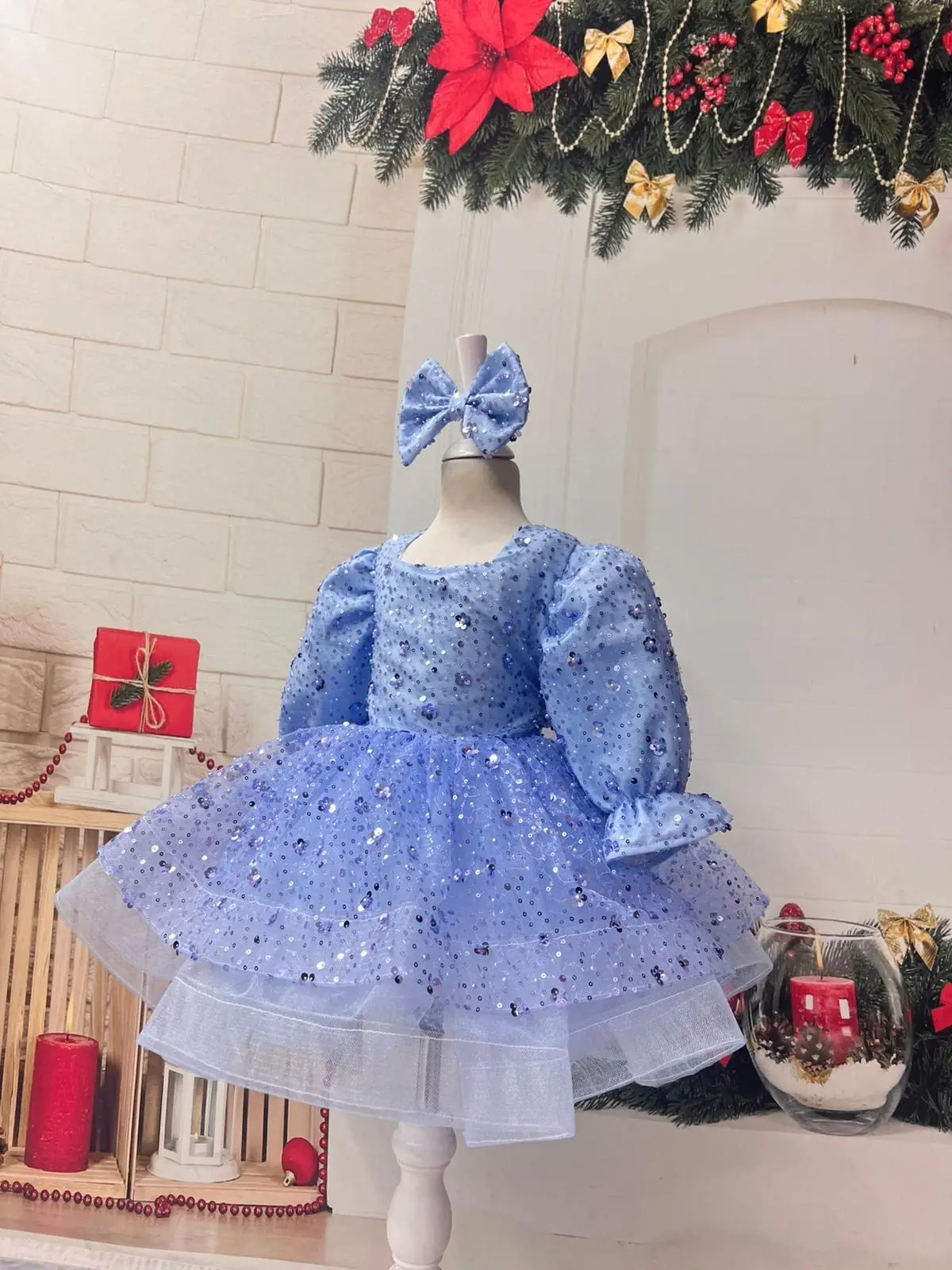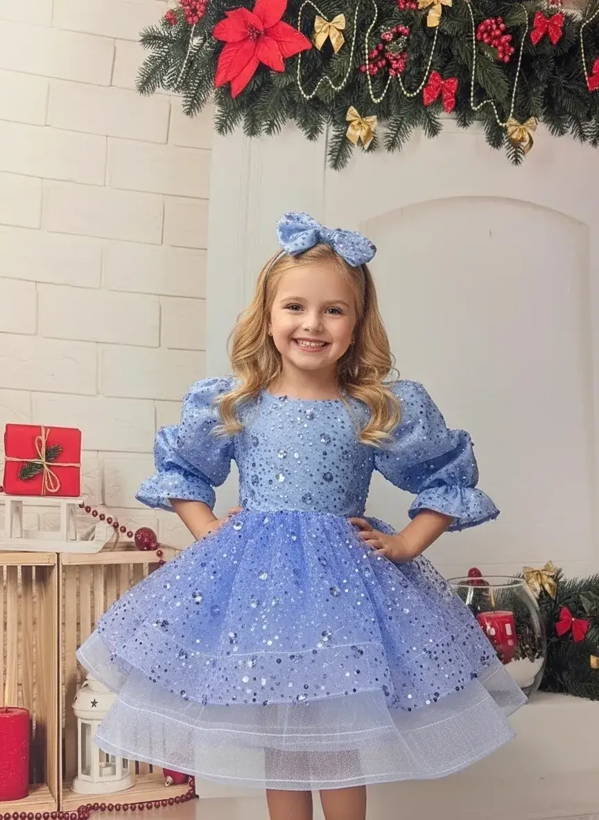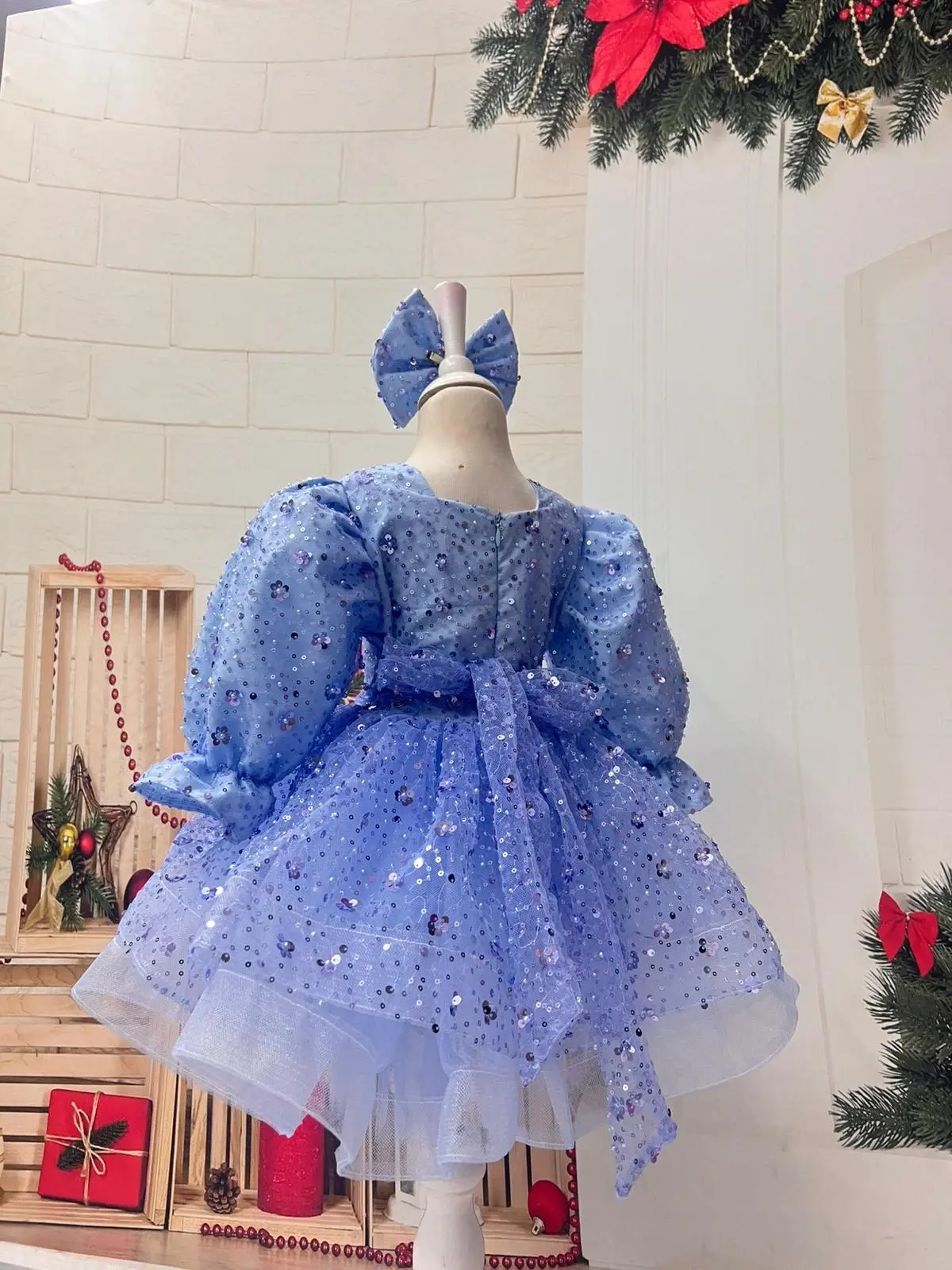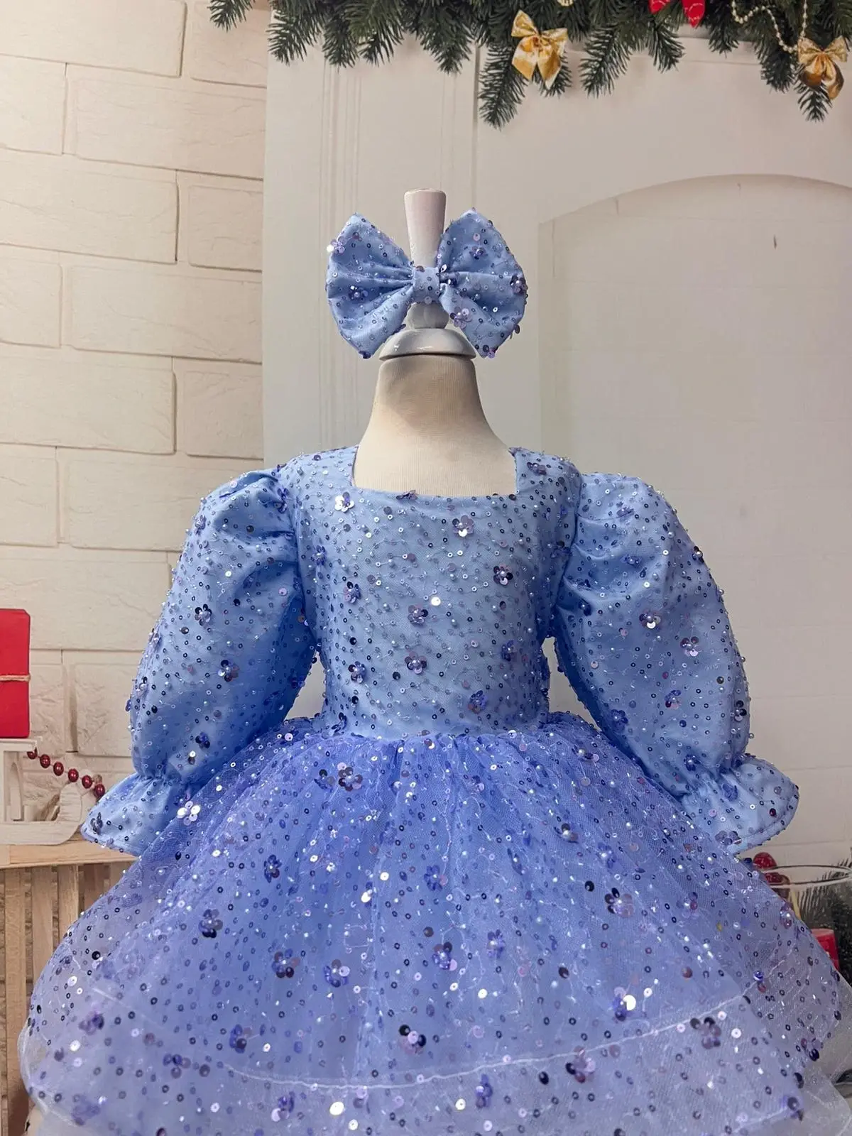 Aksesuar: Büyük mavi payetli fiyonk saç bandı