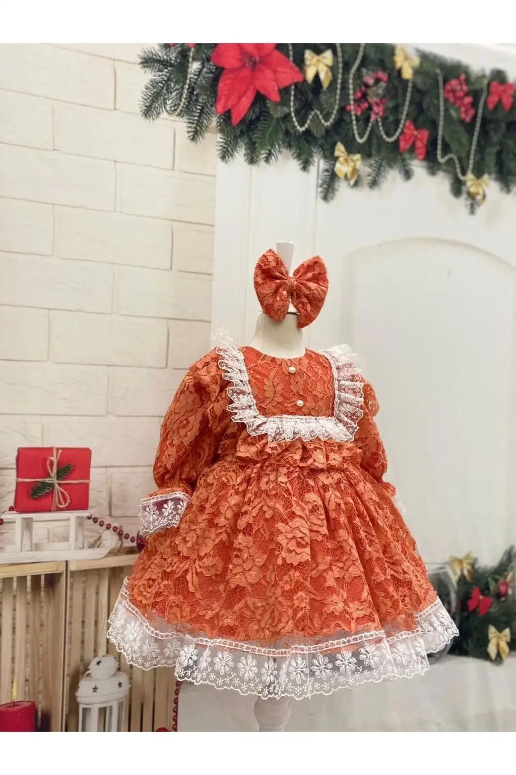 Turuncu Dantelli Kız Çocuk Elbisesi fermuarlı astarlı özel günlerde çocuğunuzun kullana bileceği çok şık bir elbise doğun günleri nişan kına bayram özel günlerde giyine bilir